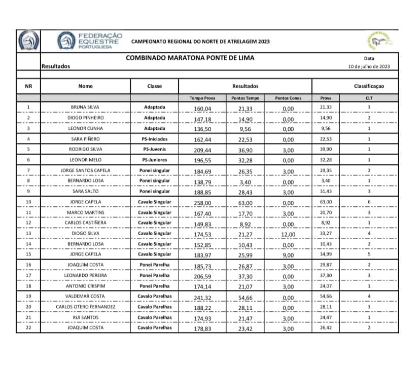 Aqui ficam os resultados da terceira jornada do Campeonato Regional Norte CM1*, que se realizou no picadeiro da Expolima, inserida na Programação da Feira do Cavalo em Ponte de Lima.
