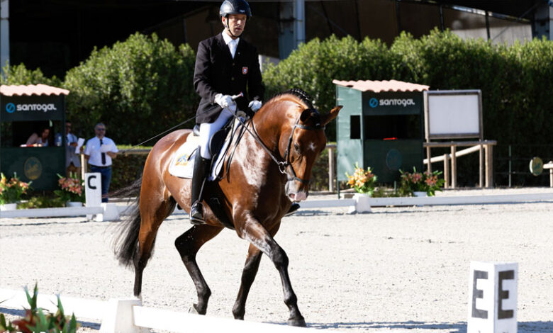 Na reprise reservada a poldros de 4 anos, (P2) João Castelão com o Lusitano Oxalá Plus, filho do Rubi x Belíssima do Pinheiro com 1,77m, fez a sua estreia com excelentes resultados para um principiante, pontuando no sábado 71,55% e na reprise FEI conseguiu 79,00% no domingo.