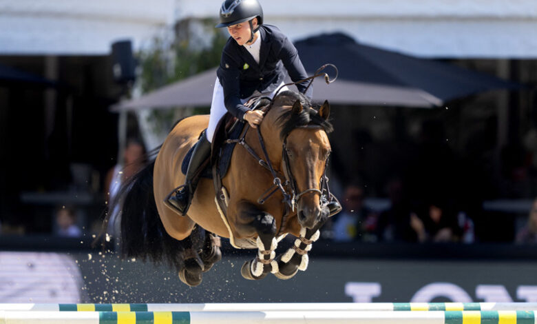Montando o garanhão Holstein de 17 anos, Sanne Thijssen foi um dos cinco conjuntos que terminaram o percurso inicial e o desempate sem faltas.