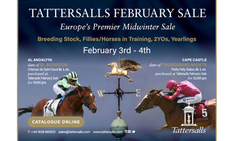O catálogo de Fevereiro da Tattersalls pode ser visto online em www.tattersalls.com e está disponível nos representantes da Tattersalls desde a passada quinta-feira, 20 de Janeiro.
