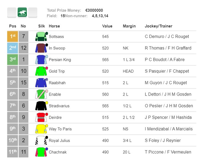 Apesar da égua favorita, «Enable», ter terminado a prova em sexto lugar, e não ter alcançado o seu terceiro triunfo neste prestigioso evento, ela ficará para a história como um dos melhores cavalos de corridas.