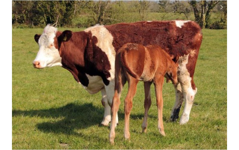 A cow has become an unlikely foster mother to an orphan foal in Co Wexford.🐴 🐮 🥰
