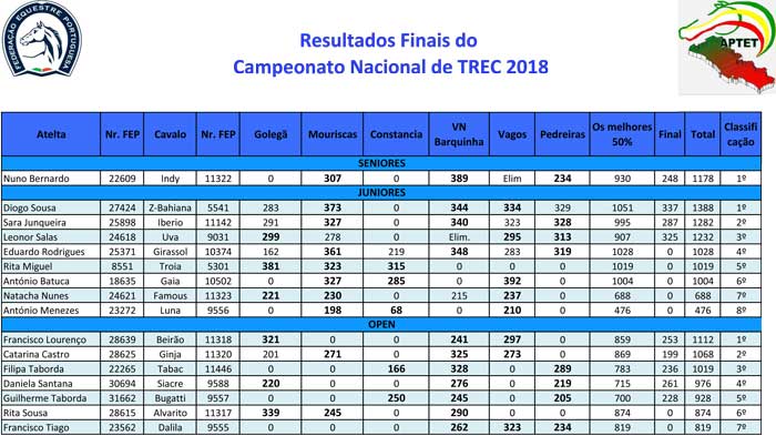Vencedores do Campeonato Nacional de TREC 2018
