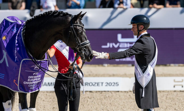 A final do Grand Prémio Freestyle do Jiva Hill Stables FEI Dressage European Championship 2025, em Crozet (FRA), foi de cortar a respiração. Os três conjuntos melhor classificados apresentaram provas de enorme qualidade, mas nenhum deles escapou sem falhas. No desfecho, brilhou Justin Verboomen (BEL) que, depois de conquistar o ouro no Grand Prix Special de sexta-feira, voltou a subir ao lugar mais alto do pódio, agora no Freestyle, montando o seu garanhão Hanoveriano Zonik Plus. Com Cathrine Laudrup-Dufour (DIN) em prata e Isabell Werth (ALE) em bronze, o pódio repetiu as mesmas posições do Grande Prémio Especial.