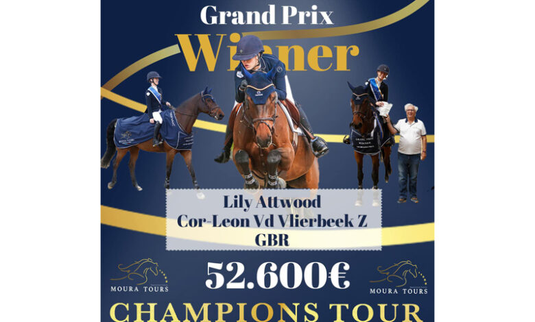 A terceira semana do VillaMoura Champions Tour terminou no último domingo, com o triunfo da britânica Lilly Attwood no Grande Prémio montando o castrado Cor-Leon vd Vlierbeek Z de 13 anos tendo registado o melhor tempo de 37,55s. Este desempenho notável colocou-a no topo do pódio, superando todos os 9 conjuntos que completaram o percurso sem penalizações. Os dinamarqueses Anne Kristine Truelsen com Quemoy KT e Emil Hallundbaek com Chalisco ocuparam o segundo e terceiro lugares respectivamente.