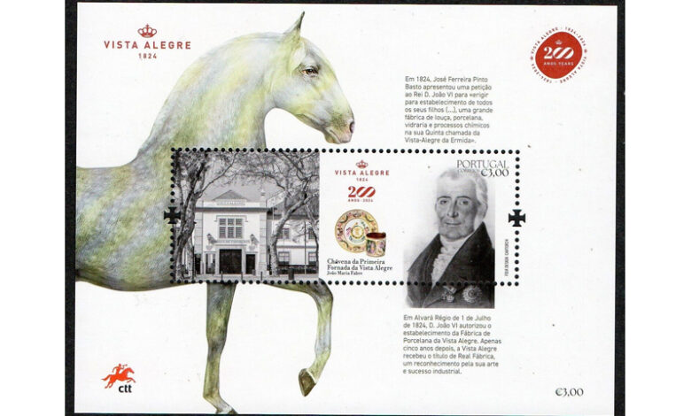 A Vista Alegre revela também que neste bloco figuram o Cavalo Lusitano, uma escultura de Donald Brindley, pintada com base num exemplar da Coudelaria Nacional e limitada a 250 exemplares numerados, e uma imagem da chávena e pires (decorados por Fabre Lusitano) da “primeira fornada em grande”, como está registado no livro comemorativo do primeiro centenário da Vista Alegre.
