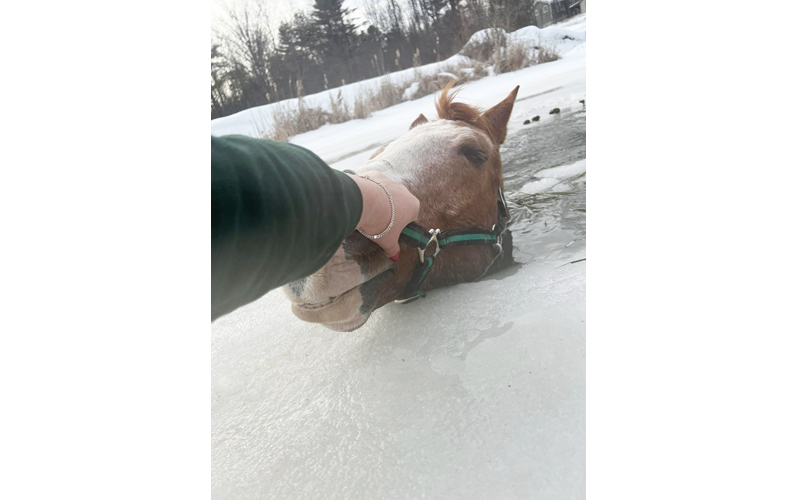 O dramático incidente ocorreu na tarde desta segunda-feira, quando a proprietária de Sly, Ali Ernst, regressava do trabalho e encontrou os seus três cavalos perto do lago na sua propriedade. Poucos momentos depois, apercebeu-se que Sly, um cavalo de raça quarto de milha de 22 anos, tinha caído num buraco no gelo e lutava para se manter na água gelada.