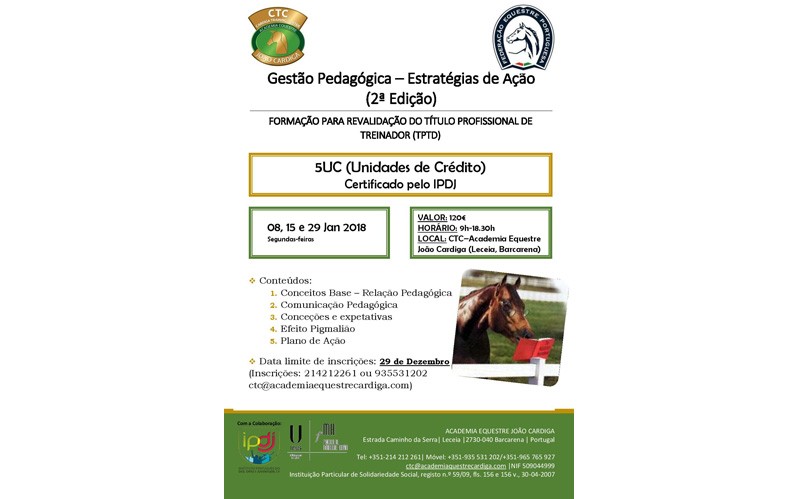 Calendário de Formação do Cardiga Training Center inicia 2018, com formação sobre Pedagogia