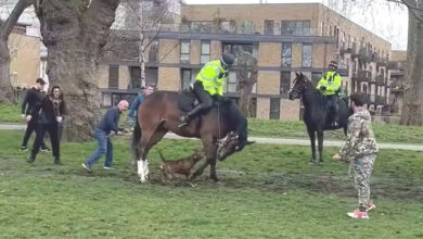 Cão ataca cavalo da polícia montada no Victoria Park (VÍDEO)